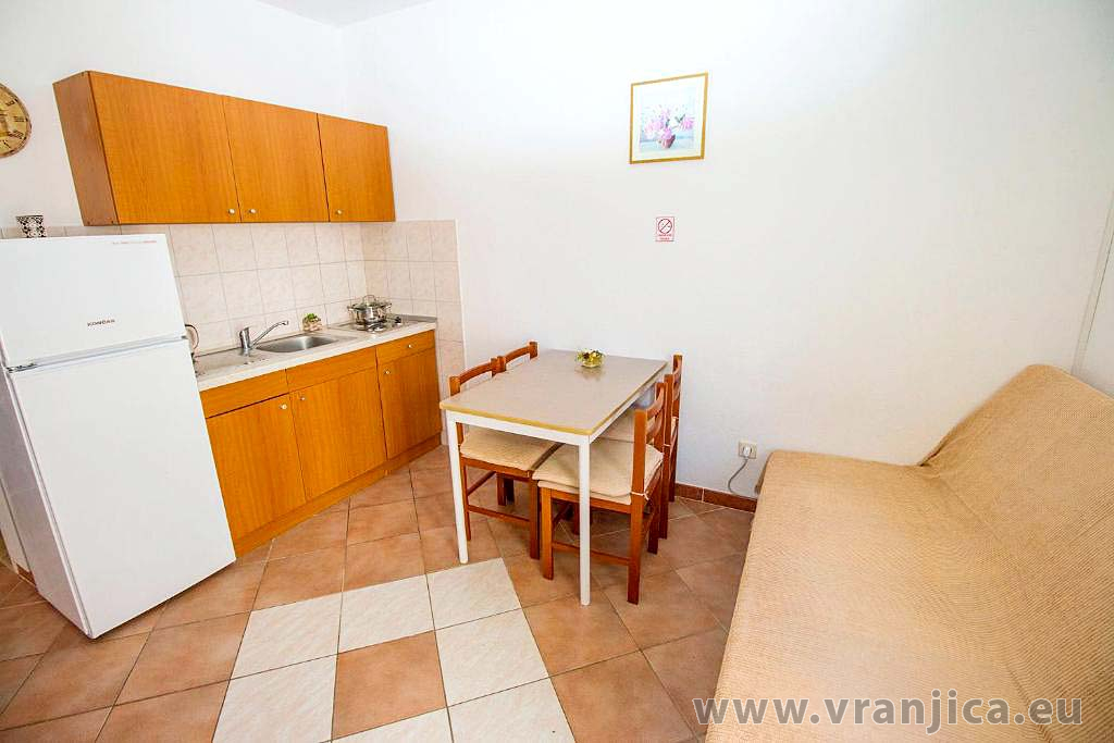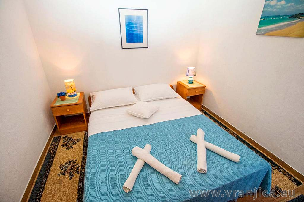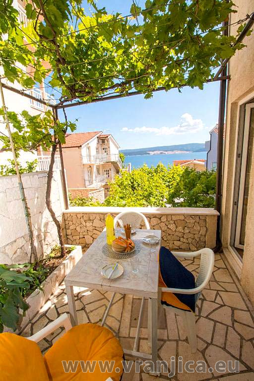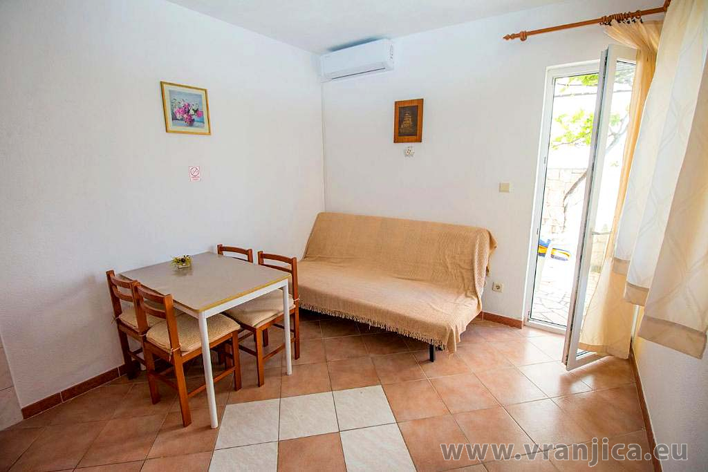 AP3 (2+2) pro 2 dospělé + 2 děti nebo pro 3 dospělé osoby - 1. patro, 1 ložnice (1x dvoulůžko), 1 obývací pokoj (1x pohovka na rozložení pro 2 osoby) + kuchyně, koupelna (WC, sprcha), boční terasa s výhledem na moře a do zahrady, plocha 35 m2. Informace o objektu ZDE.