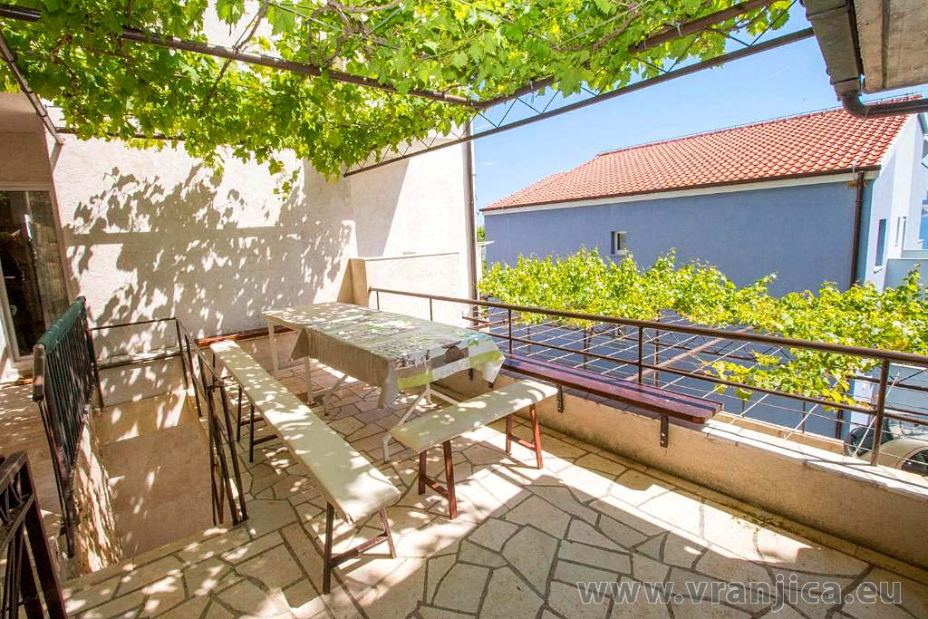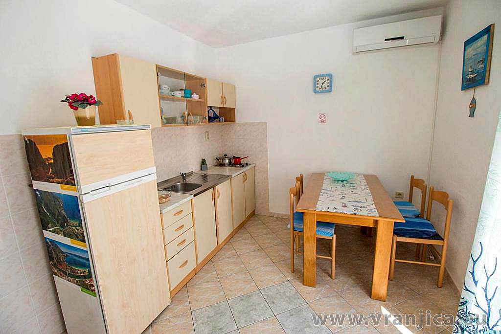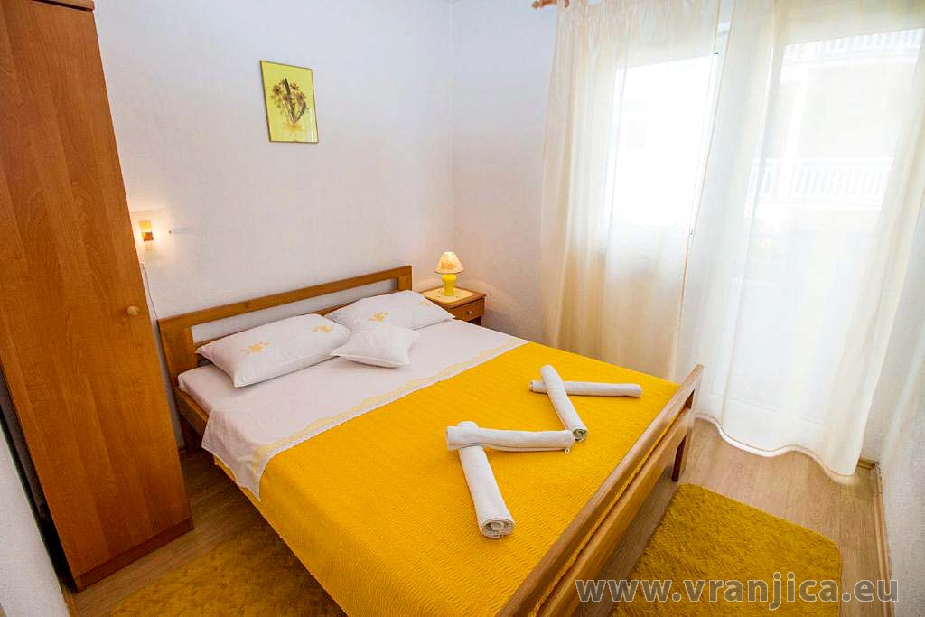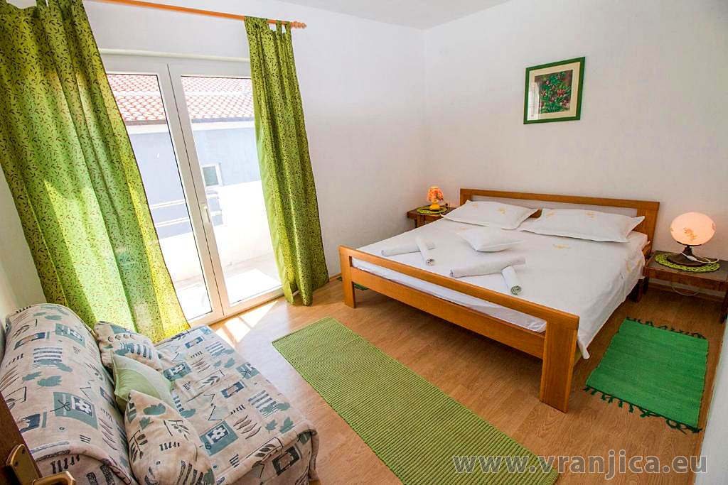 AP5 (4+2) pro 4 dospělé + 2 děti nebo pro 5 dospělých osob - 1. patro, 2 ložnice (2x dvoulůžko), 1x obývací pokoj (1x pohovka na rozložení pro 2 osoby) + kuchyně, koupelna (WC, sprcha), terasa, výhled na moře a do zahrady, plocha 50 m2. Informace o objektu ZDE.