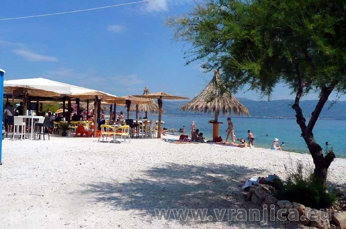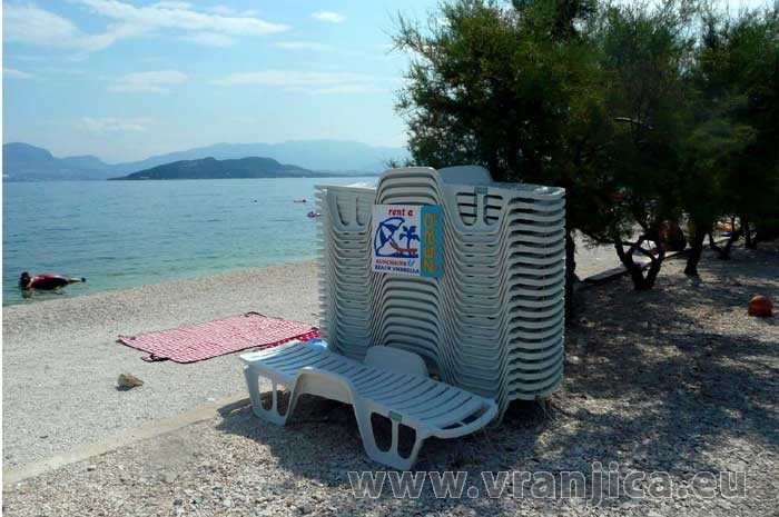 Na pláži jsou sprchy, restaurace, cafe bar a možnost zapůjčení lehátek. Po celé Slatině jsou krásné oblázkové pláže.