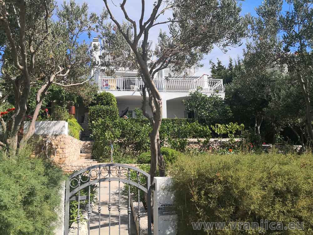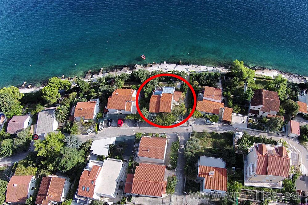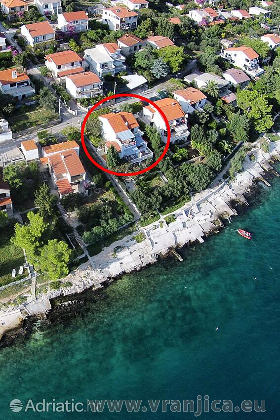 K dispozici jsou 3 apartmány: horní 4+1 pro 5 osob, střední 4+2 pro 6 osob, střední 2+1 pro 3 osoby. Každý apartmán má vlastní vchod, prostornou čelní terasu s nádherným výhledem na moře, parkování u domu. V zahradě je gril a venkoví sprcha. U středního apartmánu je možno podle potřeby terasu sloučit v případě spojení obou apartmánů. Na pláž před domem se chodí přes zahradu. Apartmány jsou vybaveny klimatizací. Vila sousedí s KAJA, TOMISLAV a FRANO