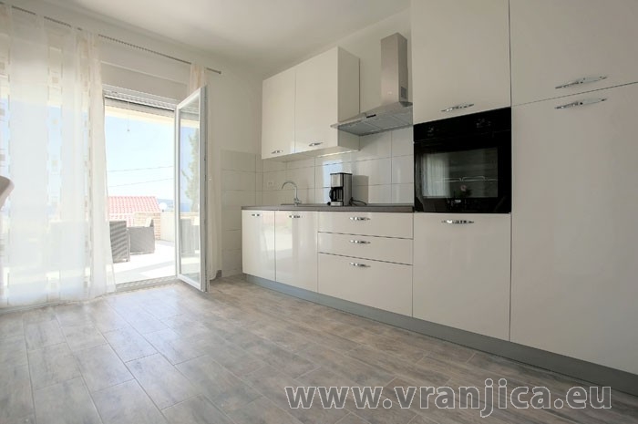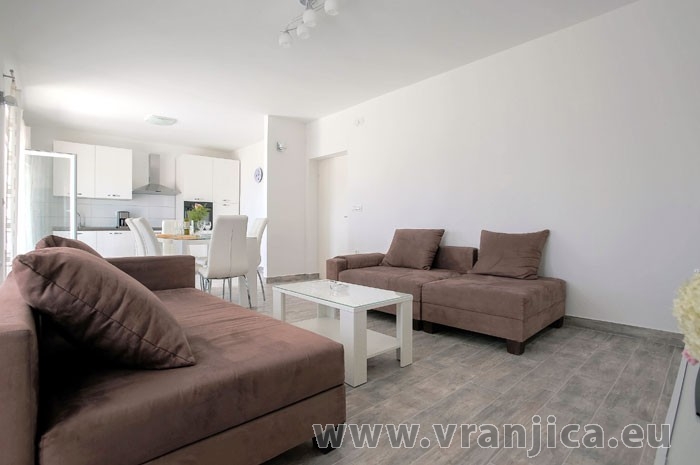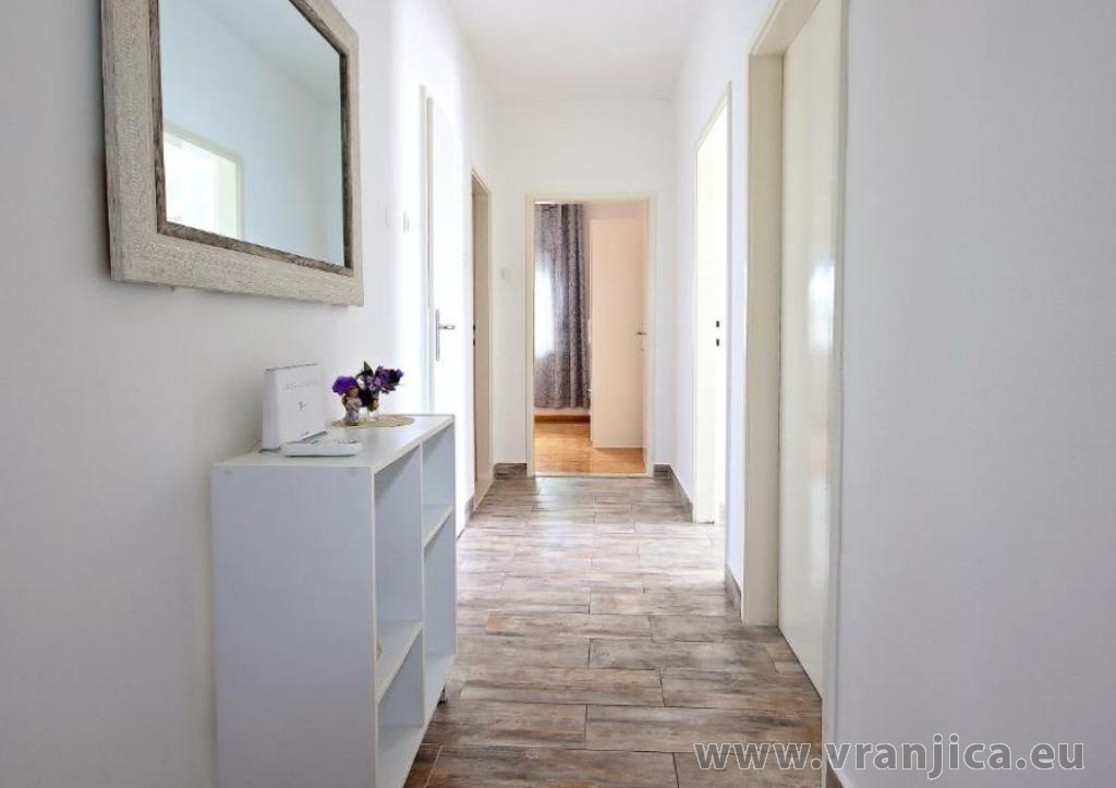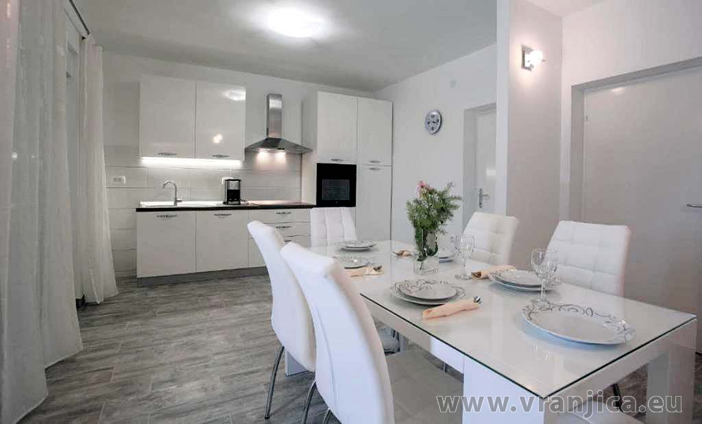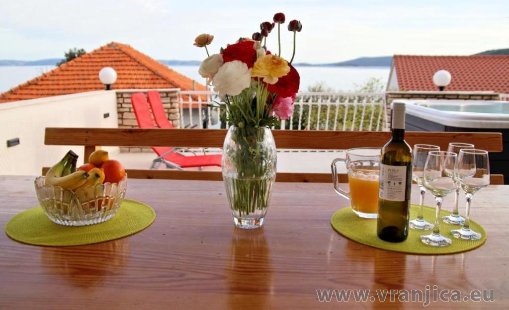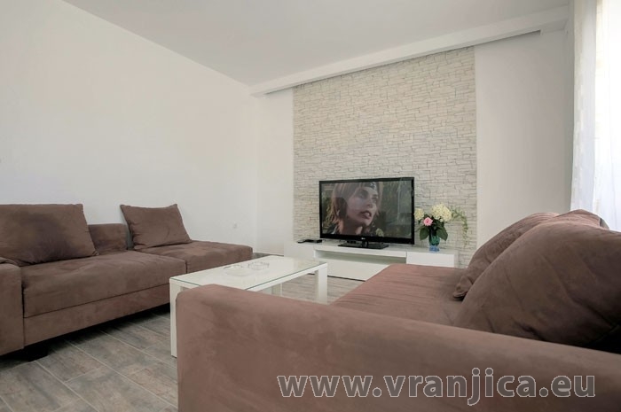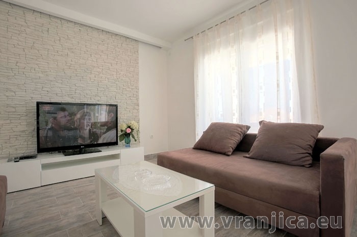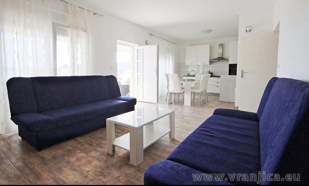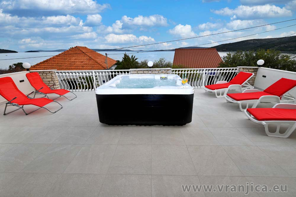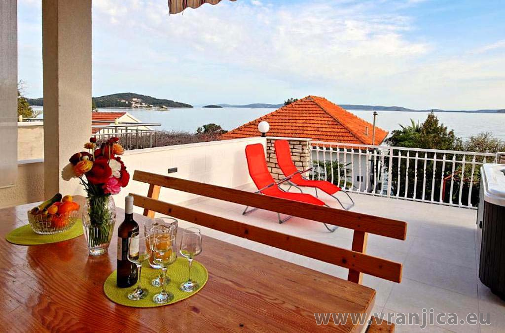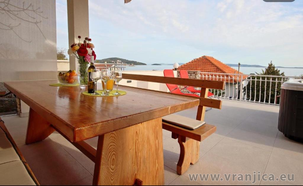 AP1 (4+2) pro 6 osob: Luxusní apartmán po rekonstrukci, zvýšené přízemí, 2 ložnice (1 pokoj dvoulůžko 180x200 cm, 2. pokoj dvoulůžko 160x200 cm), 1 velký obývací pokoj (sedací souprava na rozložení pro 2 osoby 200x200 cm), kuchyňská linka, jídelní kout, koupelna (sprcha, wc) + 2. oddělené wc, terasa s nádherným výhledem na moře. Velikost 80 m2 + terasa 55 m2. Klimatizace je instalována v chodbě a uspokojivě ochlazuje celý byt. Nová vířivka na terase. Informace o objektu ZDE.