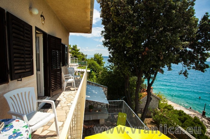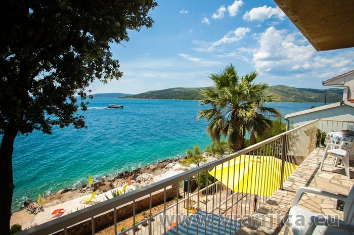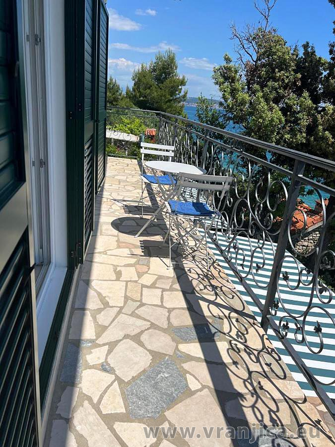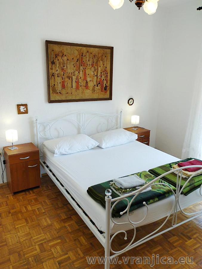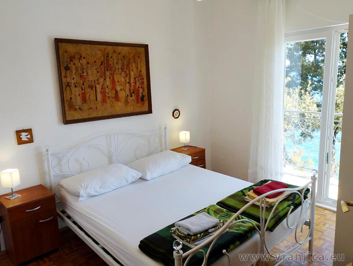 1. patro: AP1 (4+2) pro 6 osob, 2 ložnice (1. pokoj 1x dvoulůžko, 2. pokoj 2 oddělené postele), 1 obývací pokoj (pohovka na rozložení pro 2 osoby), kuchyně, jídelní kout, koupelna (sprcha, wc), terasa s nádherným výhledem na moře, klima. Velikost 80 m2, terasa 15 m2.