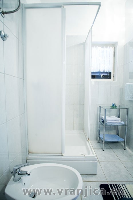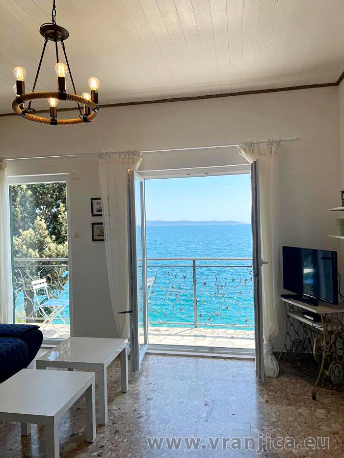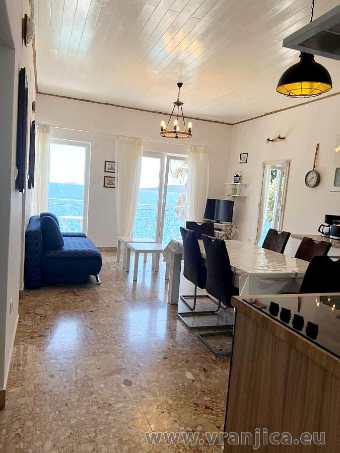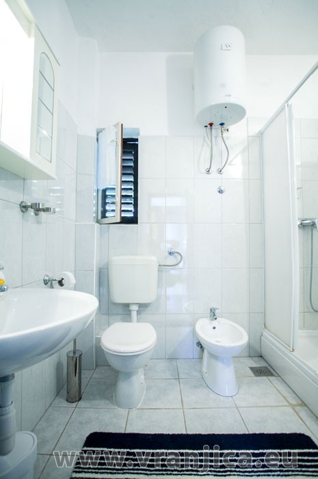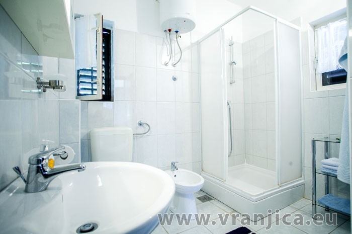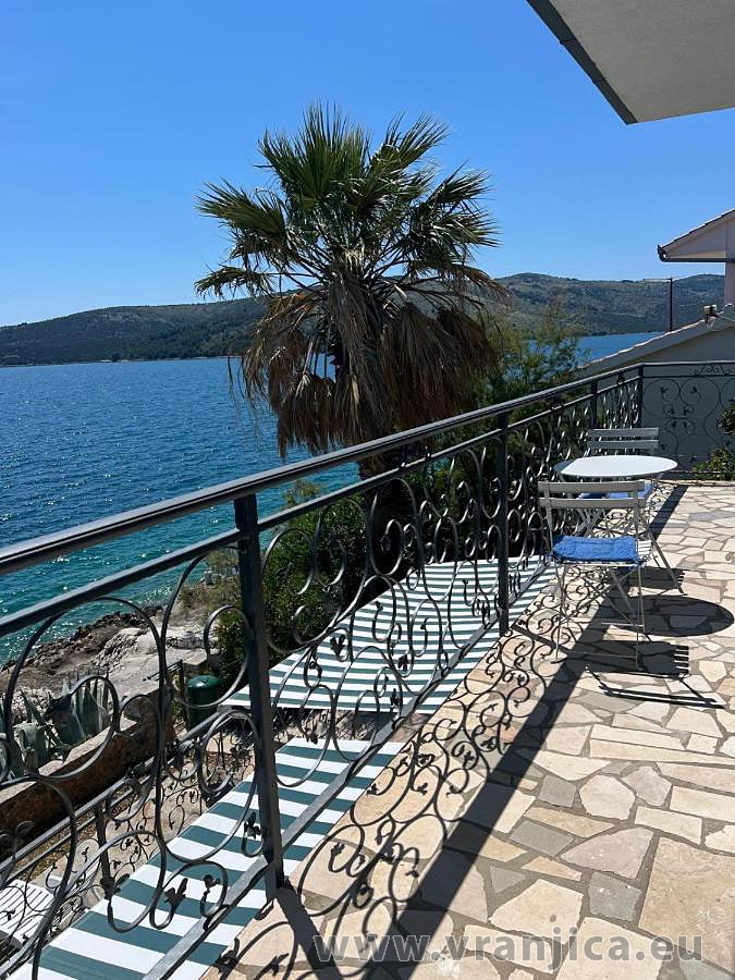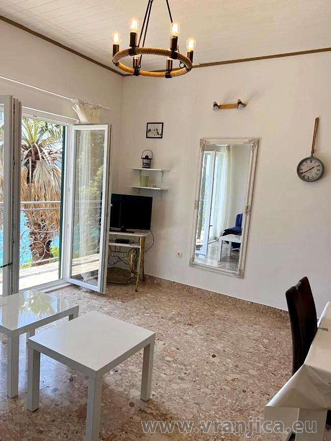 1. patro: AP1 (4+2) pro 6 osob, 2 ložnice (1. pokoj 1x dvoulůžko, 2. pokoj 2 oddělené postele), 1 obývací pokoj (pohovka na rozložení pro 2 osoby), kuchyně, jídelní kout, koupelna (sprcha, wc), terasa s nádherným výhledem na moře, klima. Velikost 80 m2, terasa 15 m2.