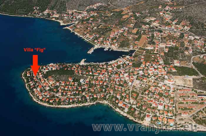 Vila se nachází 40 metrů od moře v destinaci Vranjica. Je to klidná část 4 km od historického Trogiru. Do města Split je to necelých 30 km.