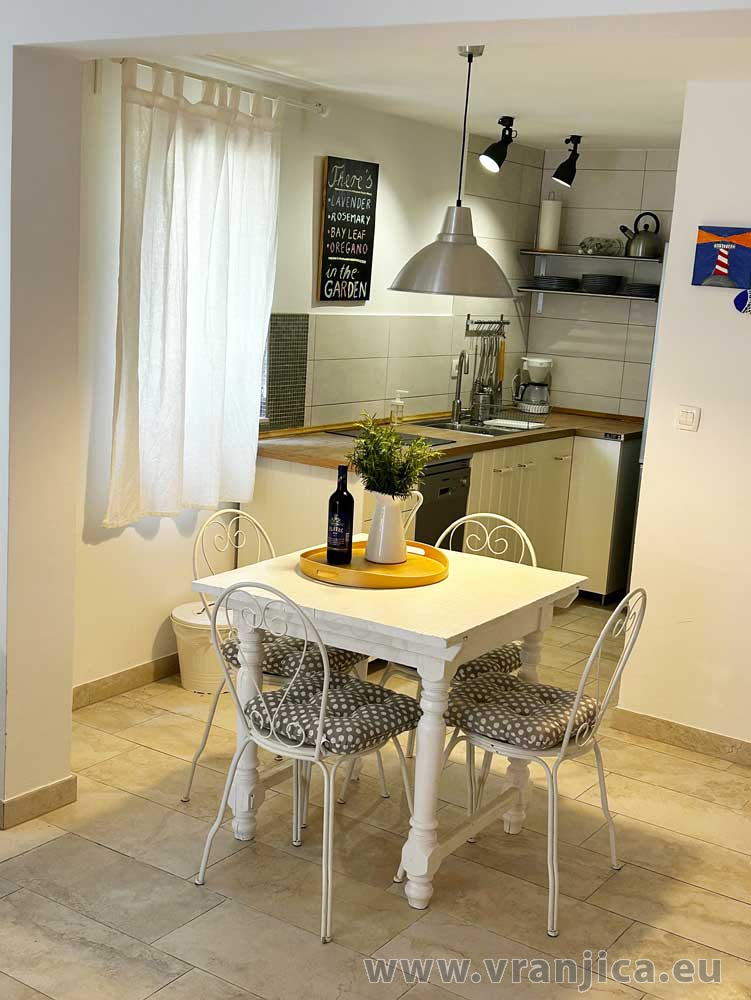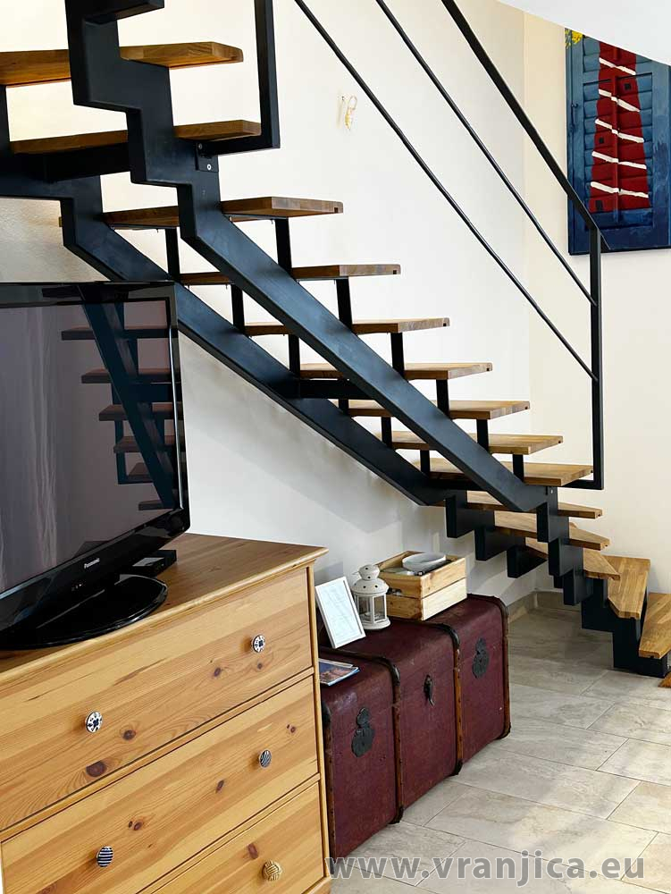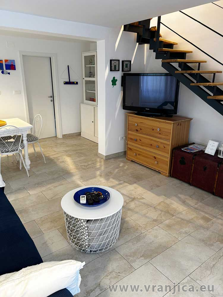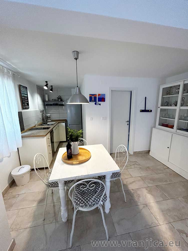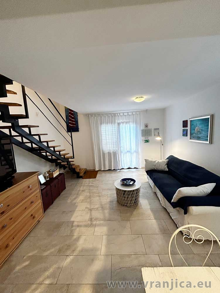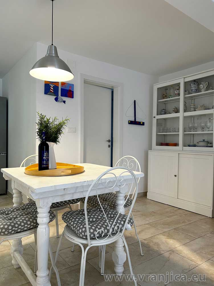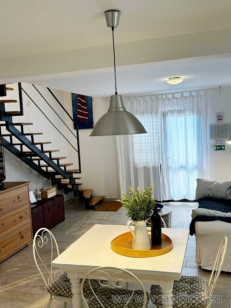 Přízemí: kuchyně, jídelní kout, obývací pokoj, koupelna (wc, sprcha), velká terasa 20 m2 s částečným výhledem na moře
