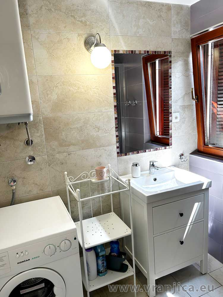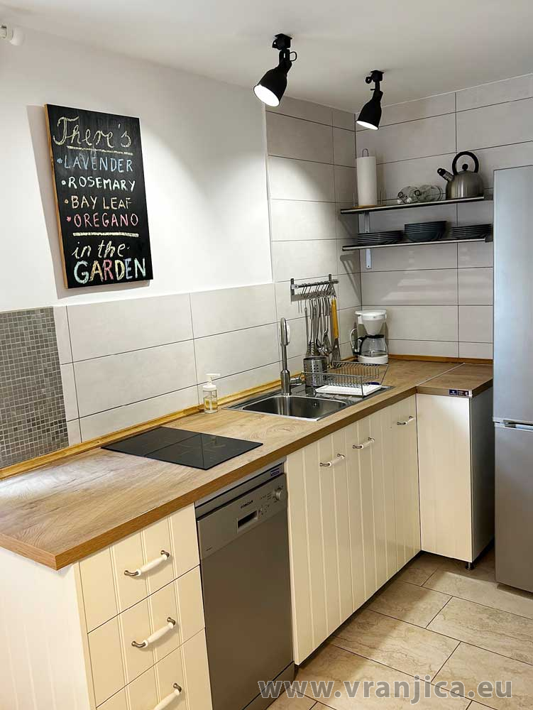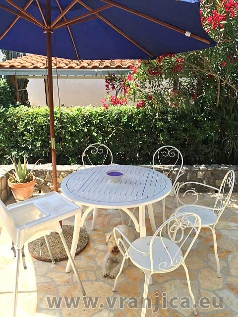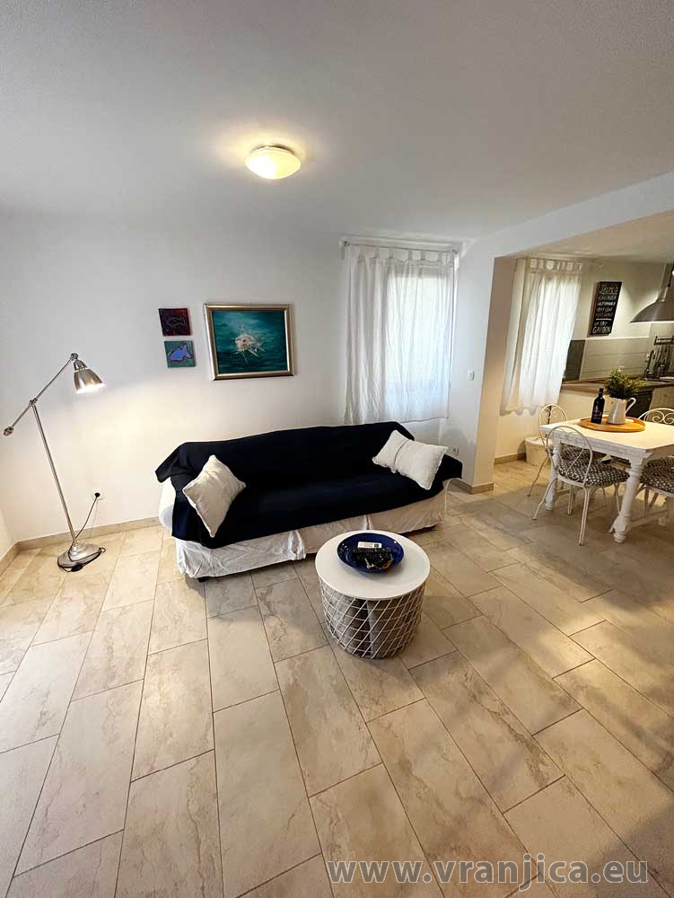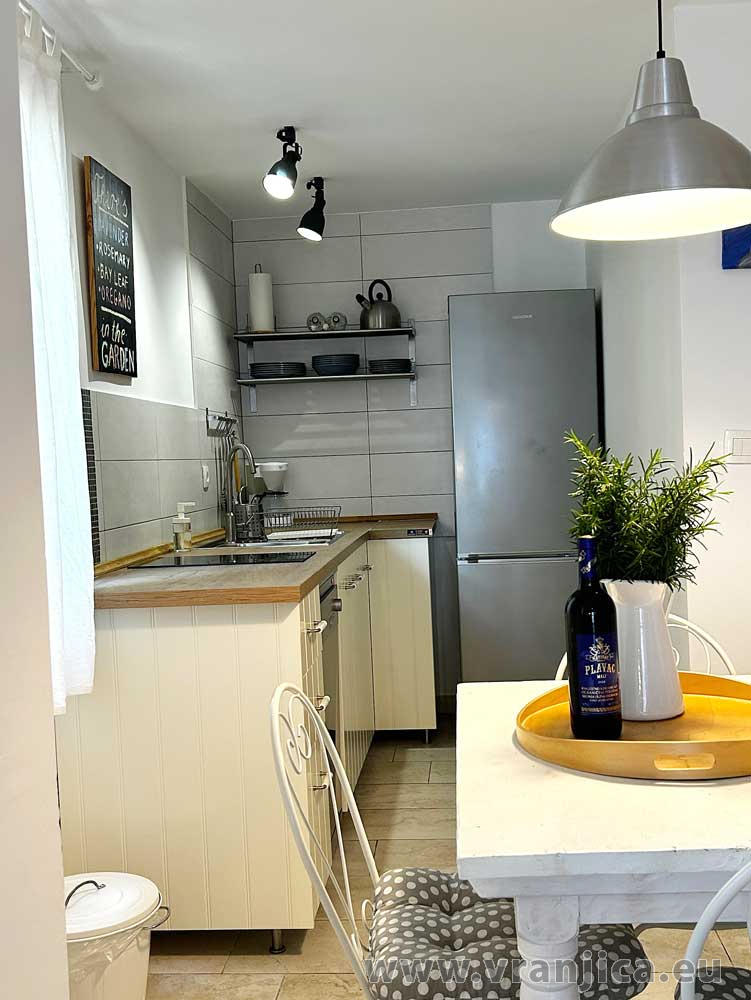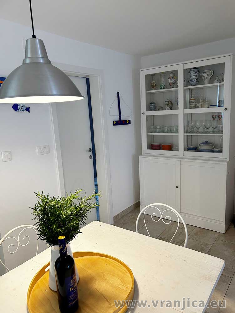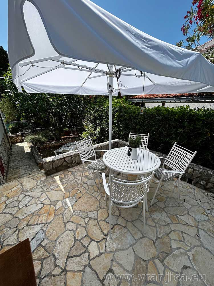 Přízemí: kuchyně, jídelní kout, obývací pokoj, koupelna (wc, sprcha), velká terasa 20 m2 s částečným výhledem na moře