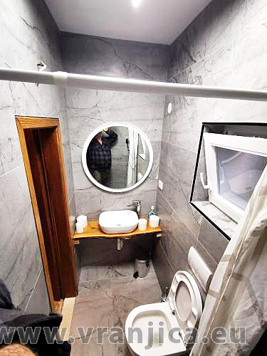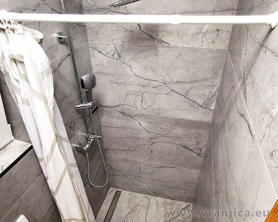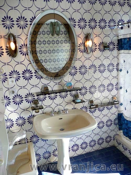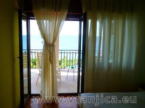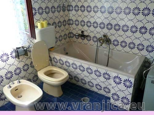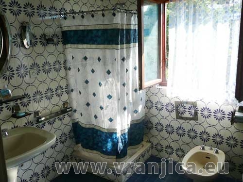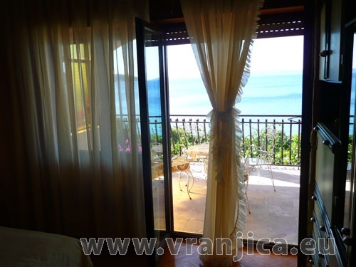 1. patro: 3 ložnice (3x dvoulůžko), chodba, velká koupelna, (WC, bidet, vana, sprcha), terasa s výhledem na moře. Velká terasa je průchozí z ložnic a je chráněna před sluncem.