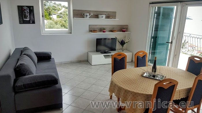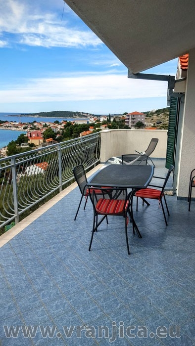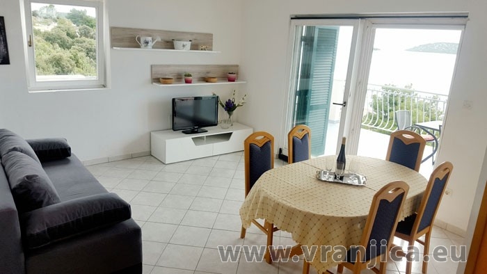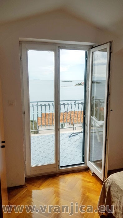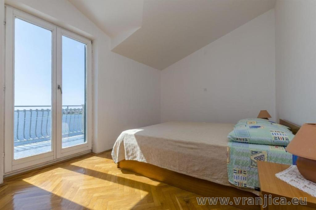 AP1 (4) pro 4 osoby - 2. patro, 2 ložnice (2x dvojlůžko), kuchyně, jídelní kout, 1 obývací pokoj (1x pohovka na rozložení), koupelna (2x wc, sprcha), velká terasa výhledem na moře. Celková plocha cca 60 m2, terasa 40 m2. Informace o objektu ZDE.