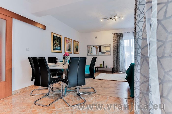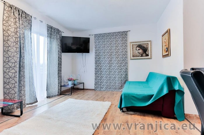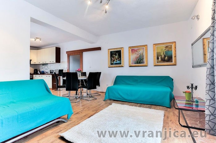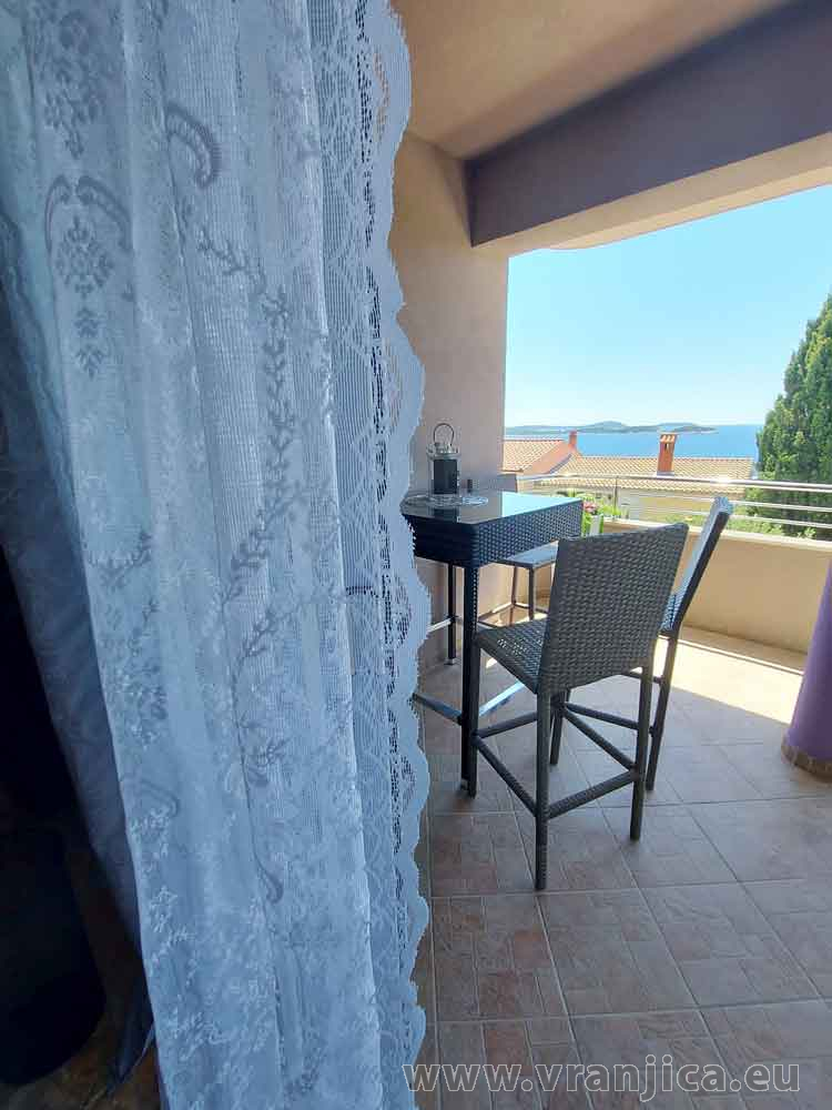 AP A (4+2) pro 4-6 osob - zvýšené přízemí, 2 ložnice (2x dvojlůžko), kuchyně, 1 obývací pokoj (1x pohovka na rozložení pro 2 osoby), koupelna (wc, sprcha), 2x terasa výhledem na moře. Celková plocha cca 140 m2, 1. terasa 50 m2, 2. terasa 6 m2, parkoviště pro 2 auta. Informace o objektu ZDE.