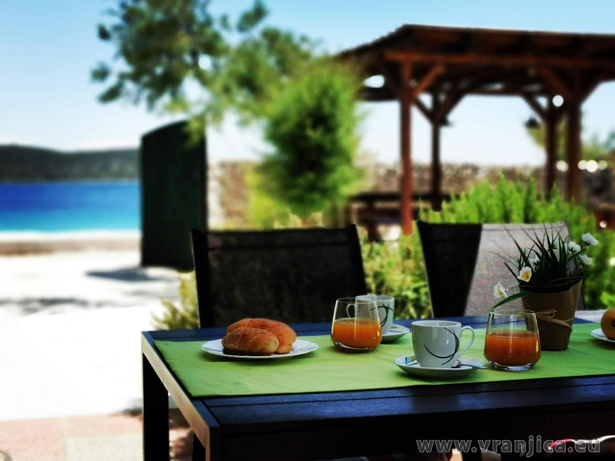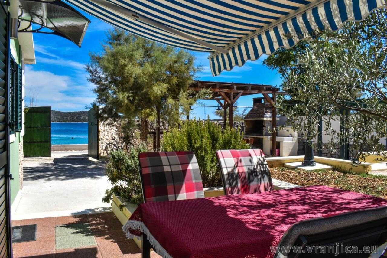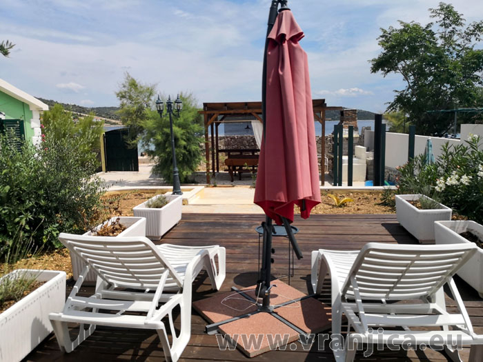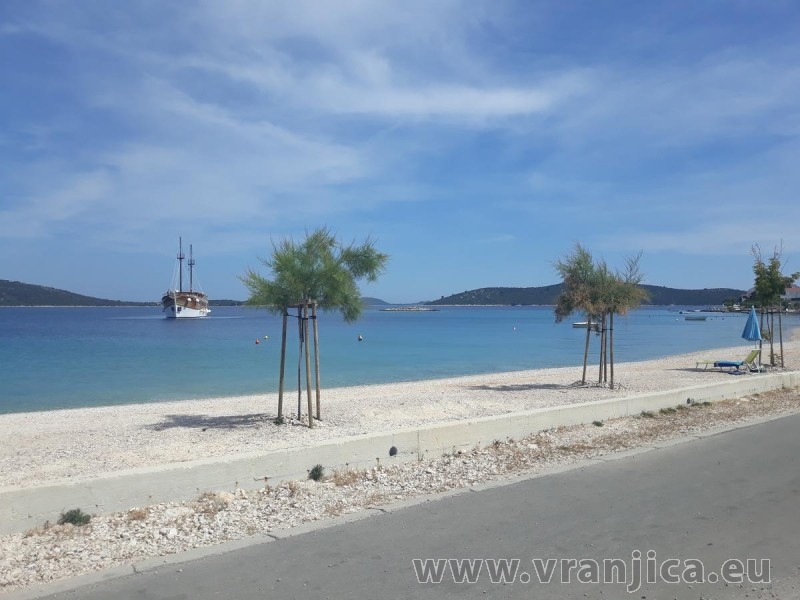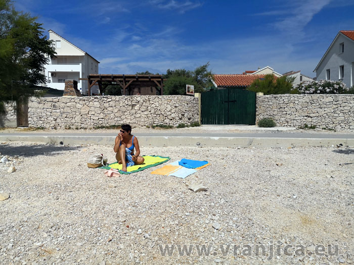 Pláž před domem je 20 m oblázková s velmi mírným vstupem do moře vhodná pro malé děti.
