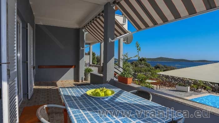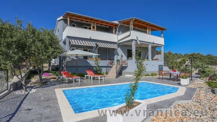 K dispozici jsou dva podobné apartmány: AP1 pro max. 4+1 osoby a AP2 pro 4 osoby včetně dětí. Každý apartmán má vlastní vchod, možnost grilování, venkovní posezení v zahradě a parkování u domu. Z vily je pěkný výhled na letovisko Sevid a okolní ostrovy. Nejbližší pláž je oblásková nebo betonová. Přístup do vody je pozvolný. V apartmánech je klimatizace a připojení na internet