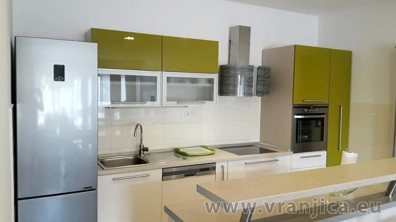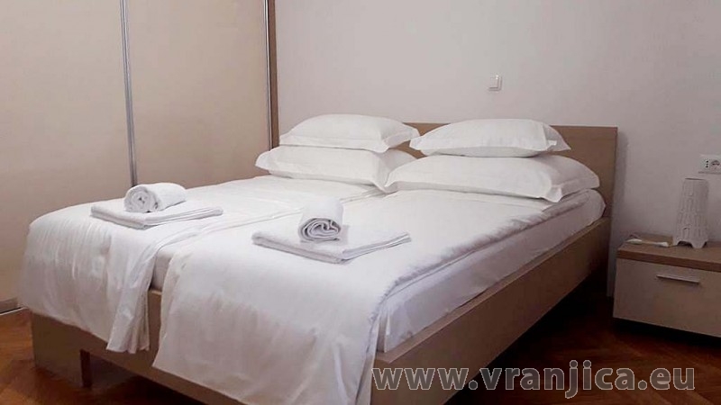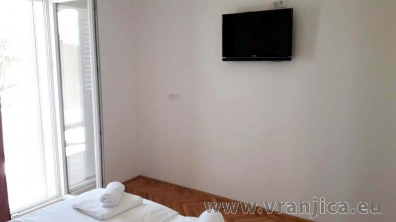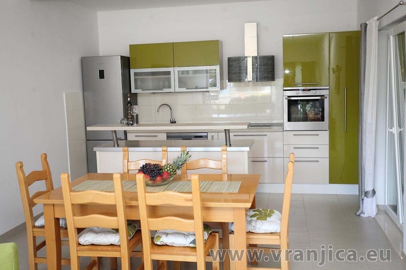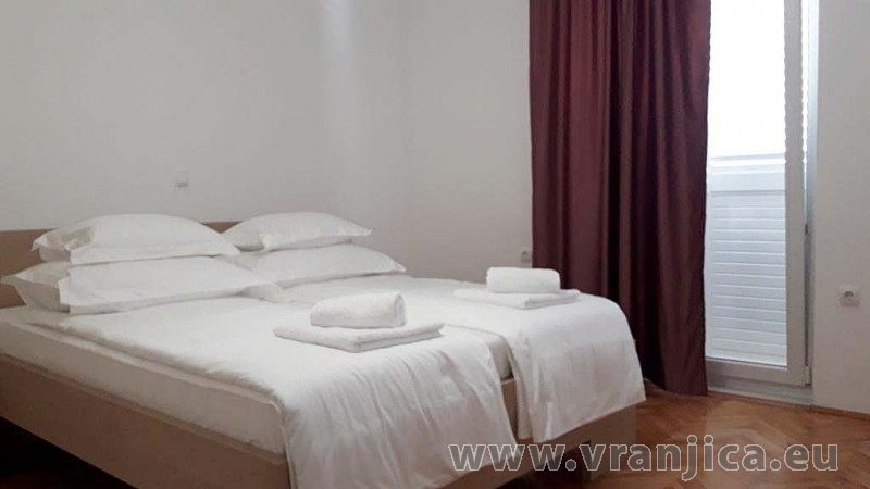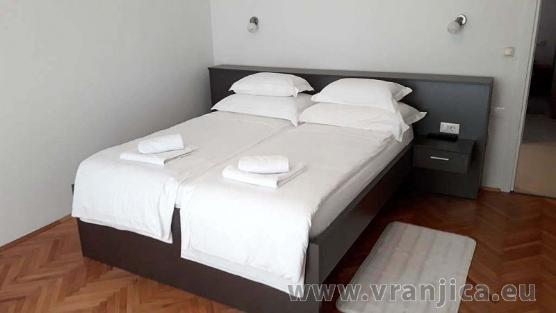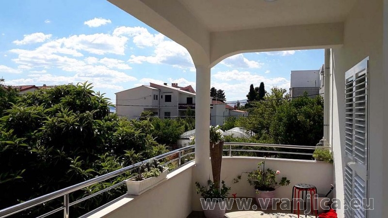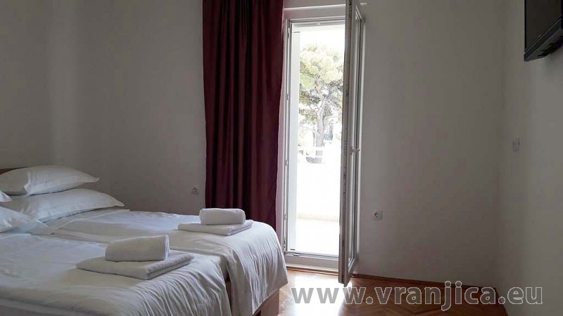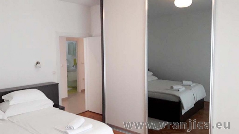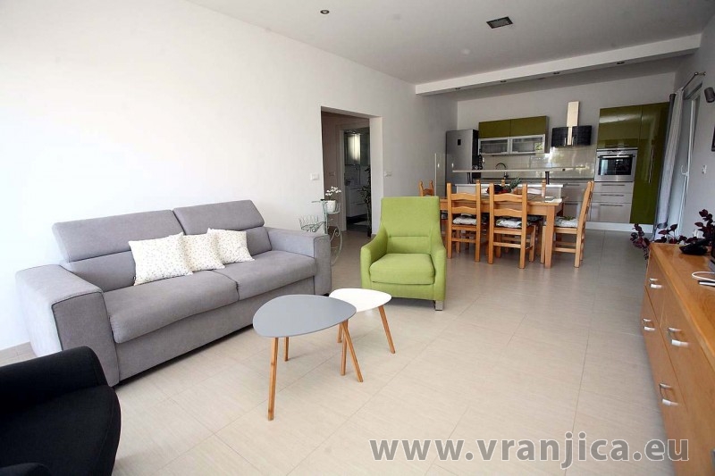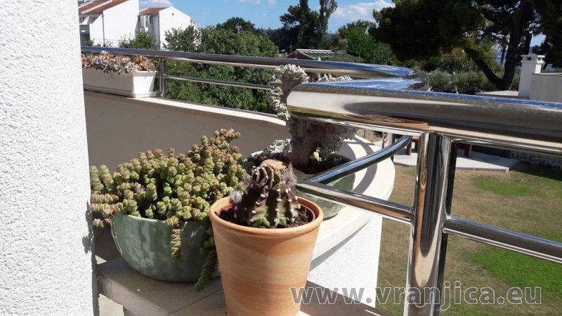 AP2 (6+2) pro 8 osob - 1. patro, 3 ložnice (3x dvoulůžko), obývací pokoj (rozkládací pohovka pro 2 osoby) + kuchyně, 2x koupelna + 2x wc, terasa s výhledem na moře. Plocha cca 120 m2, 1. terasa 35 m2, 2. terasa 5 m2. Informace o objektu ZDE.