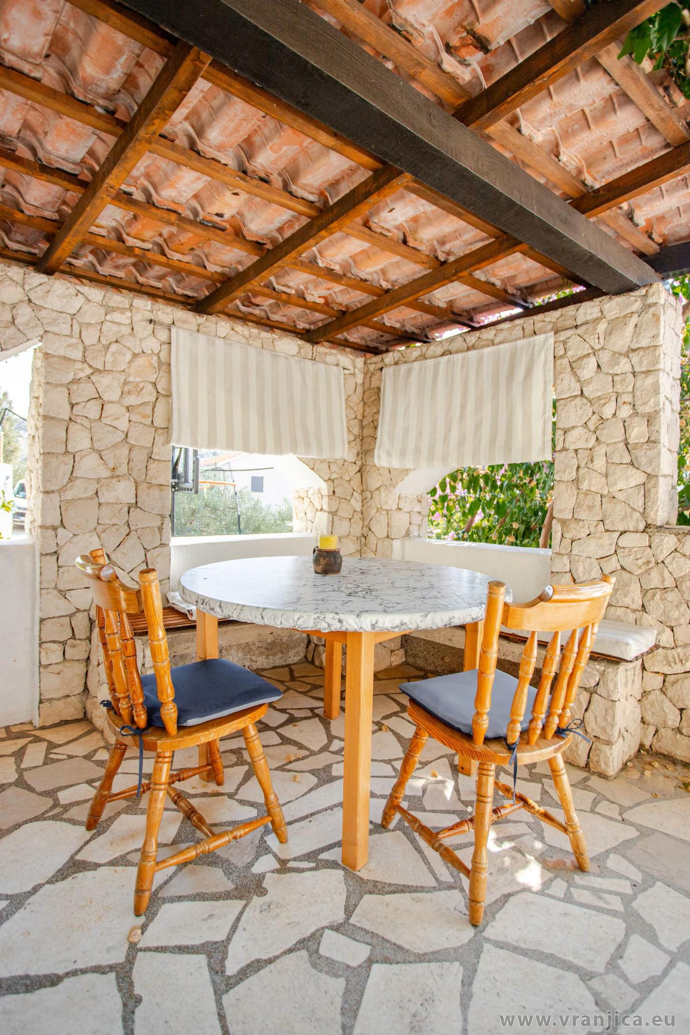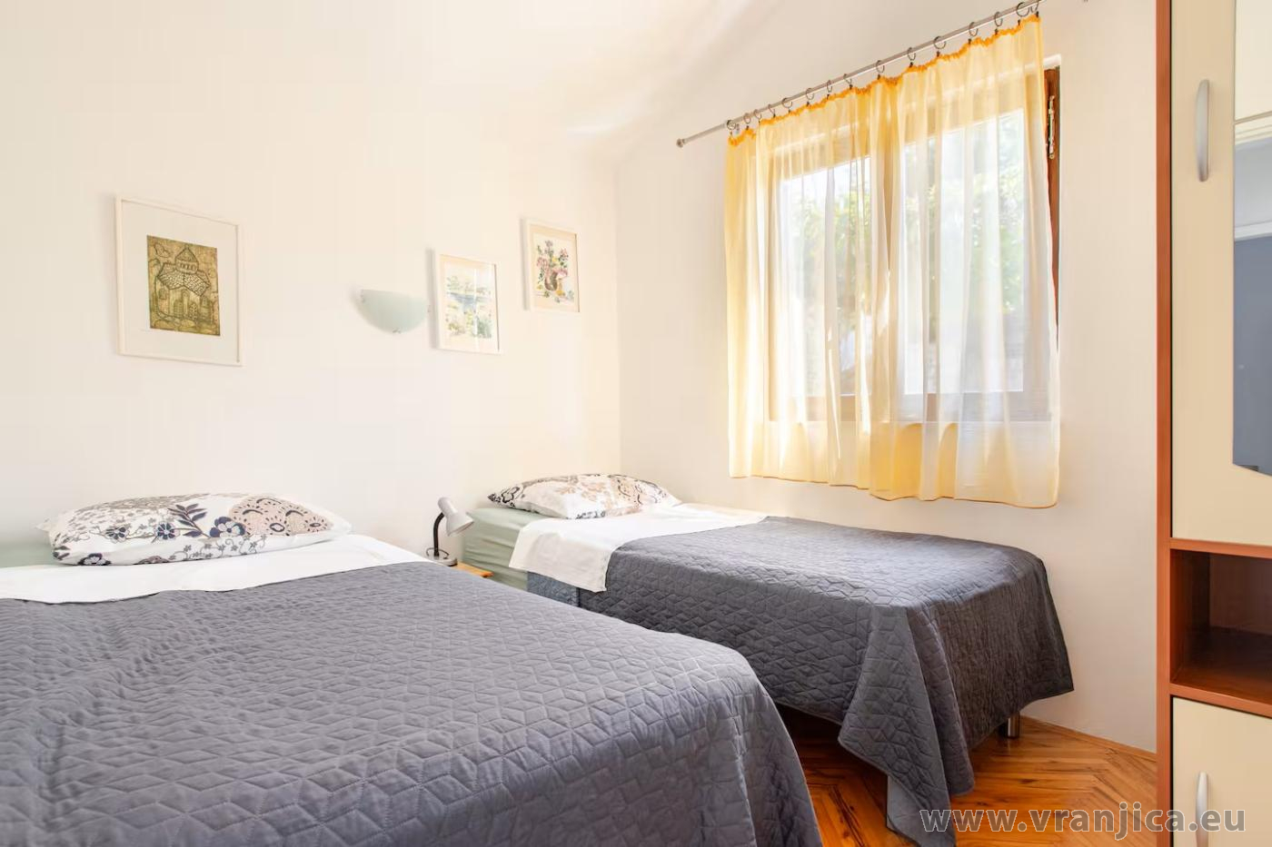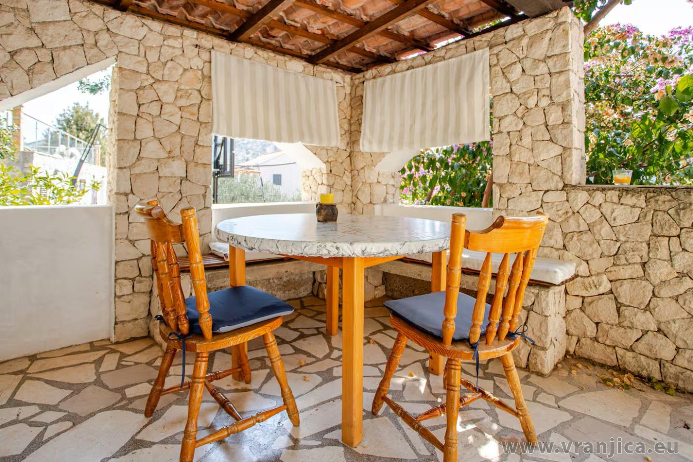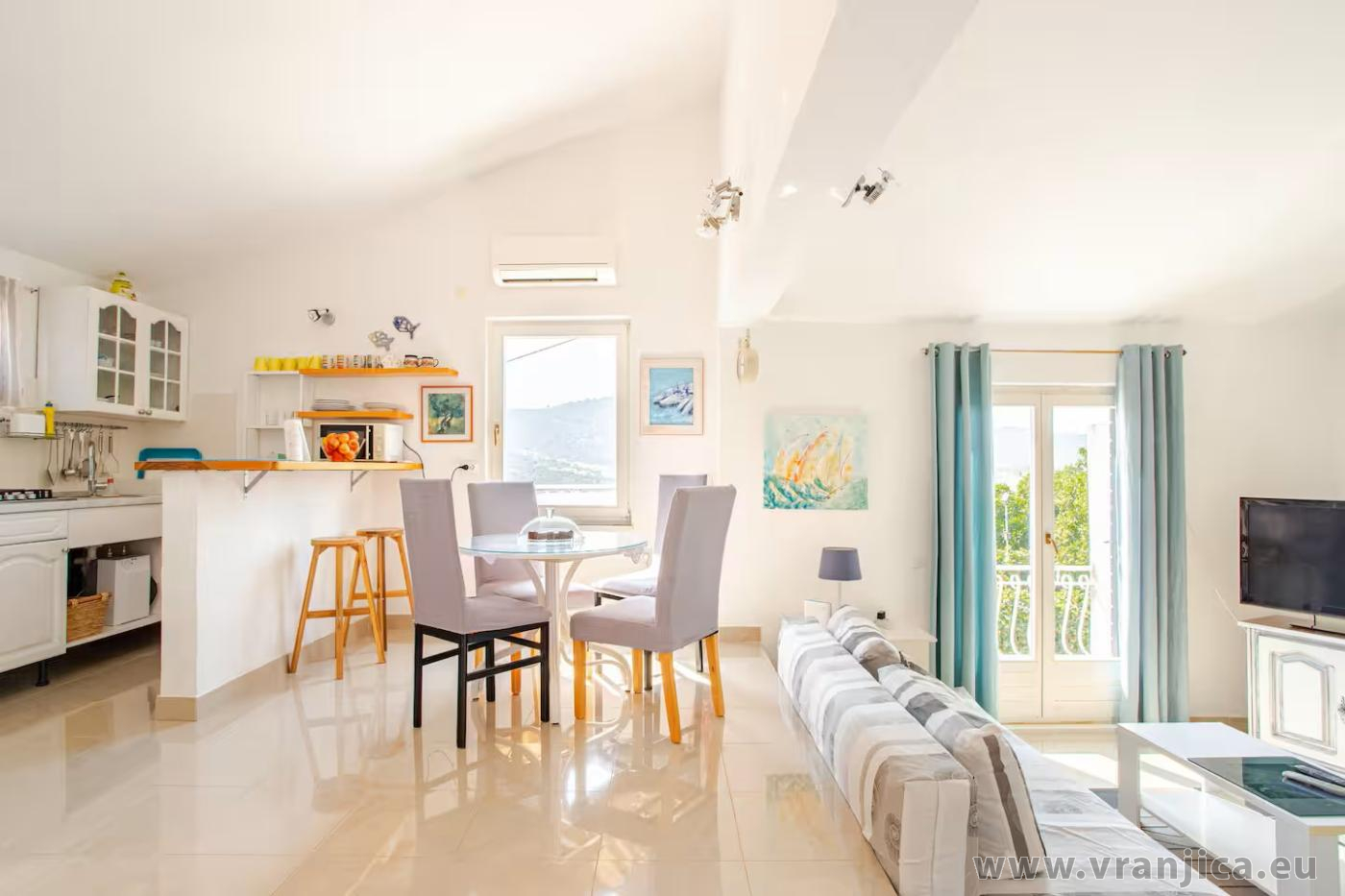 K dispozici je jeden prostorný apartnám pro 4 osoby. Apartmán má vlastní vchod, vyhrazené parkování u domu pro 2 auta, venkovní grilování, venkovní sprcha. Nejbližší pláž je oblásková, přístup do vody je pozvolný, v okolí kotví čluny. Apartmán je vybaven klimatizací a přístupem na internet wi-fi zdarma.